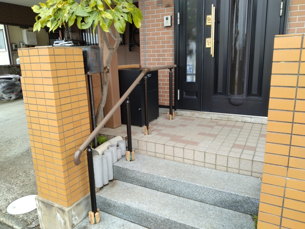 先日は玄関先への手摺り設置のご依頼をいただき、施工してきました。
