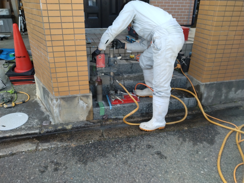 階段の石段に上質な御影石が使用されており、孔明けのプロが『かなり固いですね』と苦労されていました。